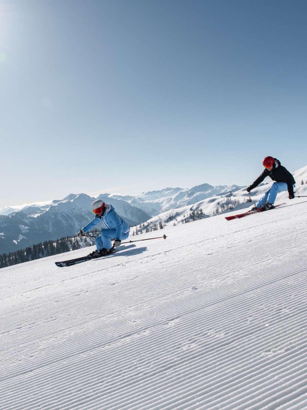 12 peaks and 5 valleys with one ski pass. 210 km of ski slopes, 70 lifts and 85 ski huts can be found in Snow Space Salzburg.